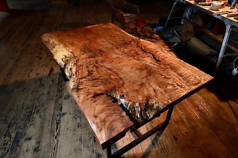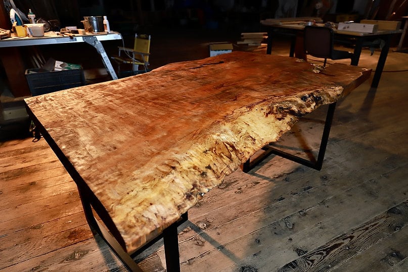 日本が誇る銘木・**栃(トチ)**の一枚板を贅沢に使用した、世界に一つだけのダイニングテーブルです。明るくやさしい木肌と、絹のような艶をまとった上品な色合い。光の角度で表情を変える美しい木目は、空間に静かに溶け込みながらも、気品ある存在感を放ちます。